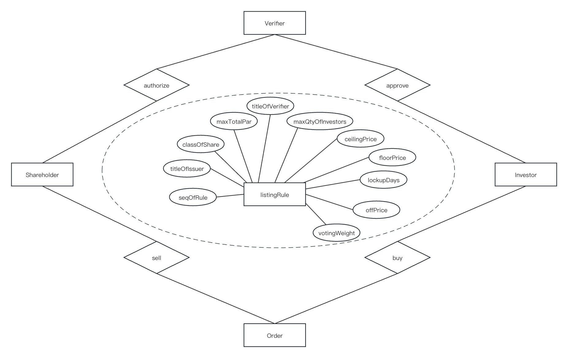 The rules of corporate governance and share transactions stipulated in a shareholders agreement are categorized into "rules" and "terms" according to their complexity and regulatory matters. "Rules" are defined in a 32-bit array and rely on the "Rules Parser Repository" to parse the key attribute values, periods values or conditional determination thresholds for each rule, which include: general corporate governance rules, voting rules, executive position allocation rules, rights of first refusal rules, concert party rules, and listing and trading rules. "Terms", defined by independent smart contracts that rely on structured data objects and their methods to define specific exercise conditions and intermediate parameter algorithms. Currently these include: anti-dilution terms, lock-up terms, drag-along terms, tag-along terms, and (compulsory buy, compulsory sell) options.
