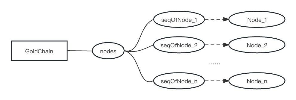 The golden chain mainly consists of the node object representing the sell order of listing shares, and its sell order node mapping chain composed of "node number -> node object".